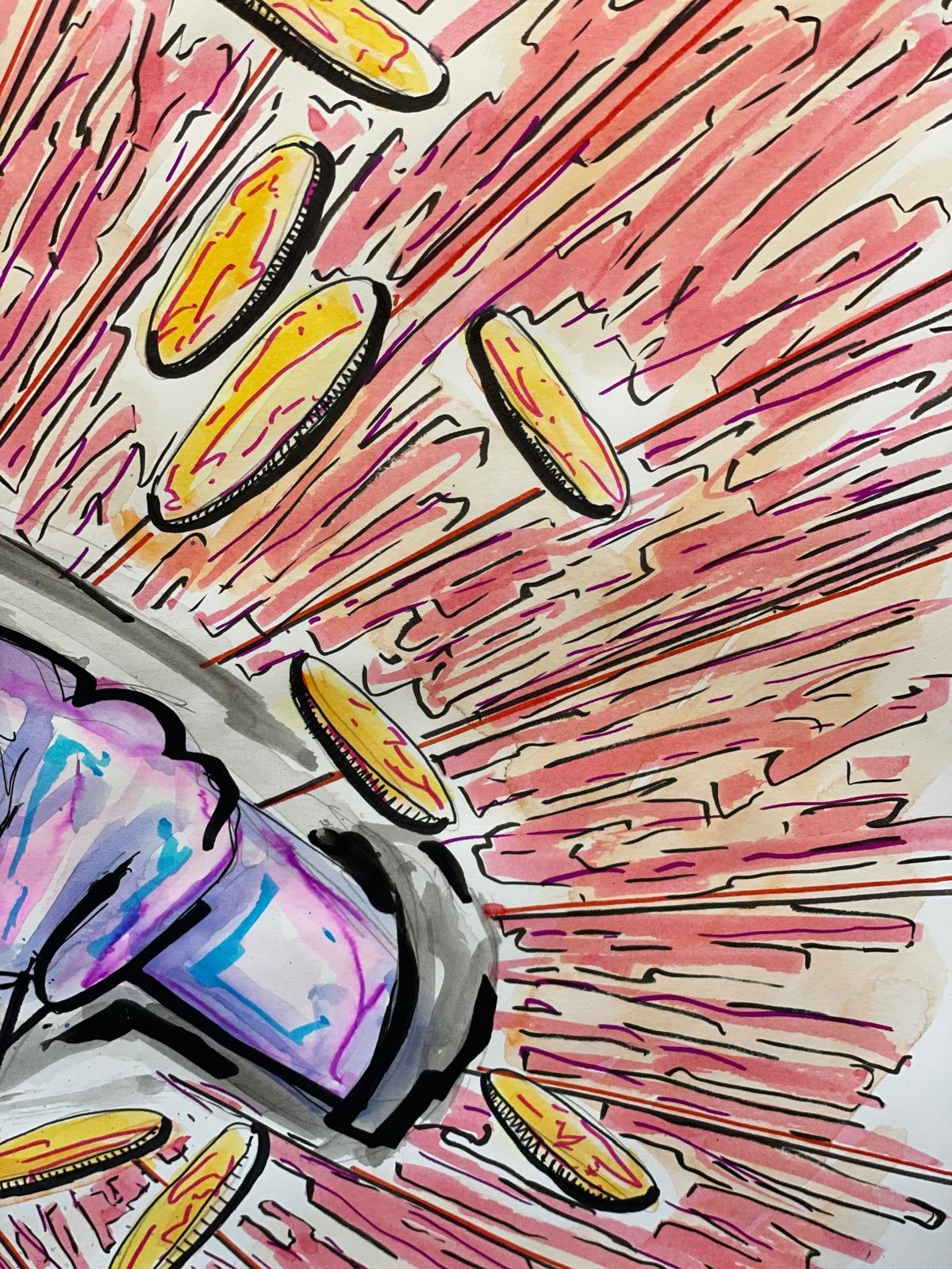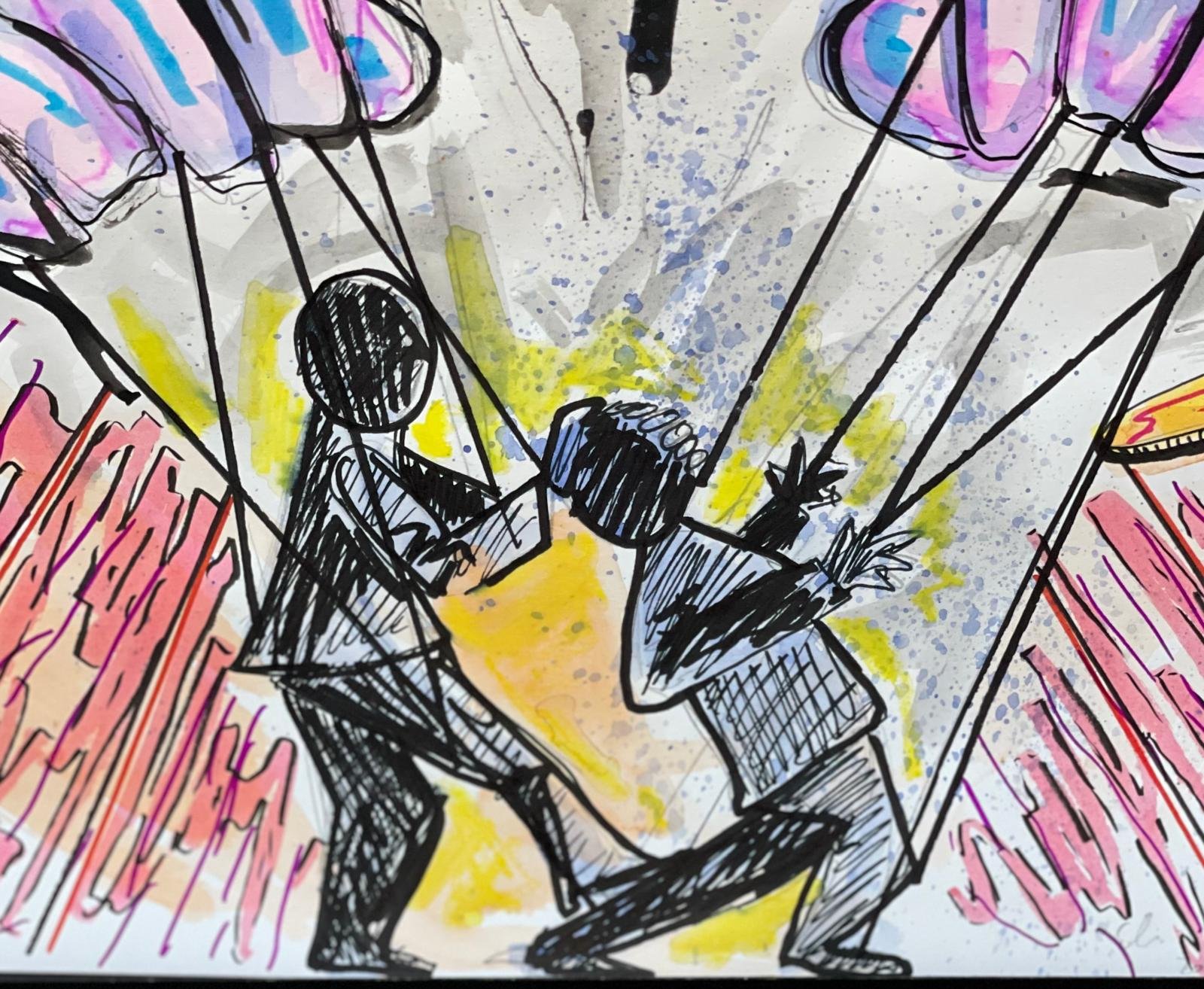 Spiritual Geometries Psychedelic-inspired painting of an Indian girl. Watercolor and acrylic on paper. Dimensions: 33×48. One-of-a-kind. Buy Now